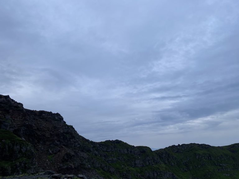 只今6:00 気温11.6℃ 曇り 風 微風 視界良好 少しどんよりした雲があたり一面を覆っています。たまにポツリと雨を感じる時も。 今日は一日中このような空模様。 最近無謀な登山をする方が見受けられます。ご自分の体力、天気を考えて無理はしないようにお願いします!