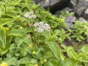毎日暴風雨ですが山頂ではシラネニンジン、イワブクロが花を咲かせ始めています。