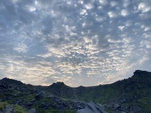 風が弱く雲が多い朝。これはこれでなかなか綺麗。今日も天気がよさそうです。