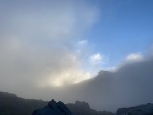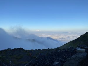 朝からガスに包まれた山頂。