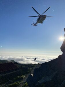 ガスガスになったり晴れたりを繰り返した夕方。2度のチャレンジでヘリでの下山に成功!
