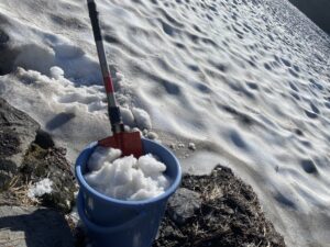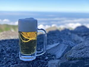 山頂の残雪で冷えた生ビールいかがでしょうか?