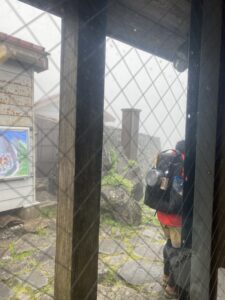 それから次第に風が強くなり、今は濡れガスの強風。嵐です….