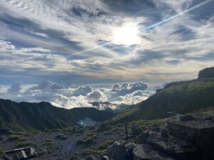 雨の日が数日続き、すっかり秋の雰囲気漂う山頂です。カップラーメンがよく売れる。