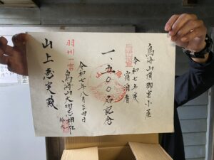 先日営業開始からご宿泊のお客様1500名達成して、そのお客様に記念品を贈呈しました。