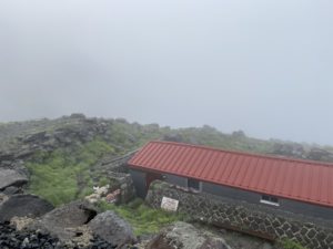 どうやら山頂付近のみの雲がかかっているよう。登山される方は岩が湿っているので足元に気をつけて登山なさってください。